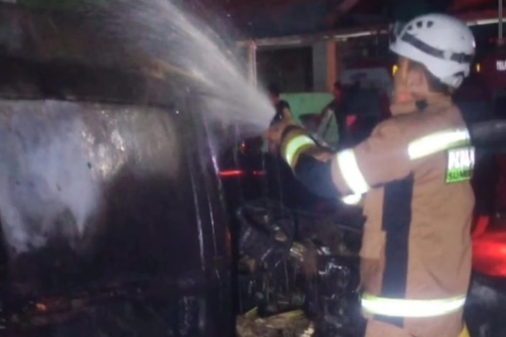 Satu unit mobil bernomor polisi D 8532 CW mengalami kebakaran di Dusun Cibubuhan RT 04 RW 07 Desa Cimanggung Kecamatan Cimanggung Kabupaten Sumedang, Rabu (22/6), sekitar pukul 17.30 WIB.