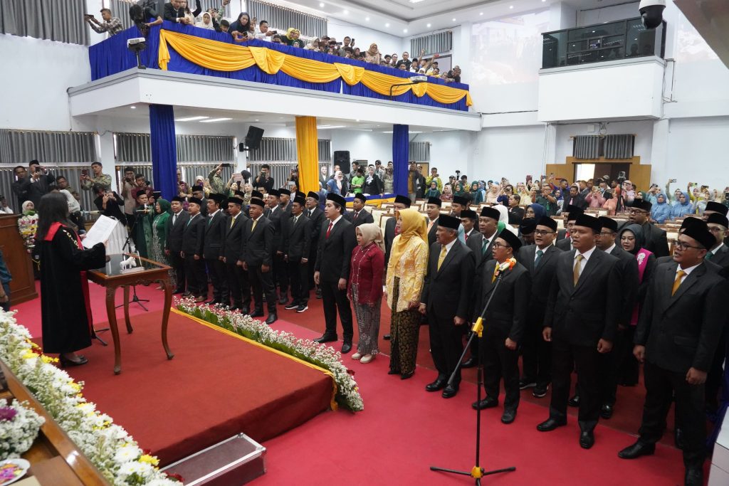 Dalam suasana khidmat, para anggota DPRD yang baru diambil sumpah dan janjinya oleh Ketua Pengadilan Negeri Garut, Sinta Gaberia Pasaribu. Acara ini turut dihadiri oleh Sekretaris Daerah Kabupaten Garut, Nurdin Yana, serta jajaran Forkopimda dan pimpinan DPRD periode sebelumnya.