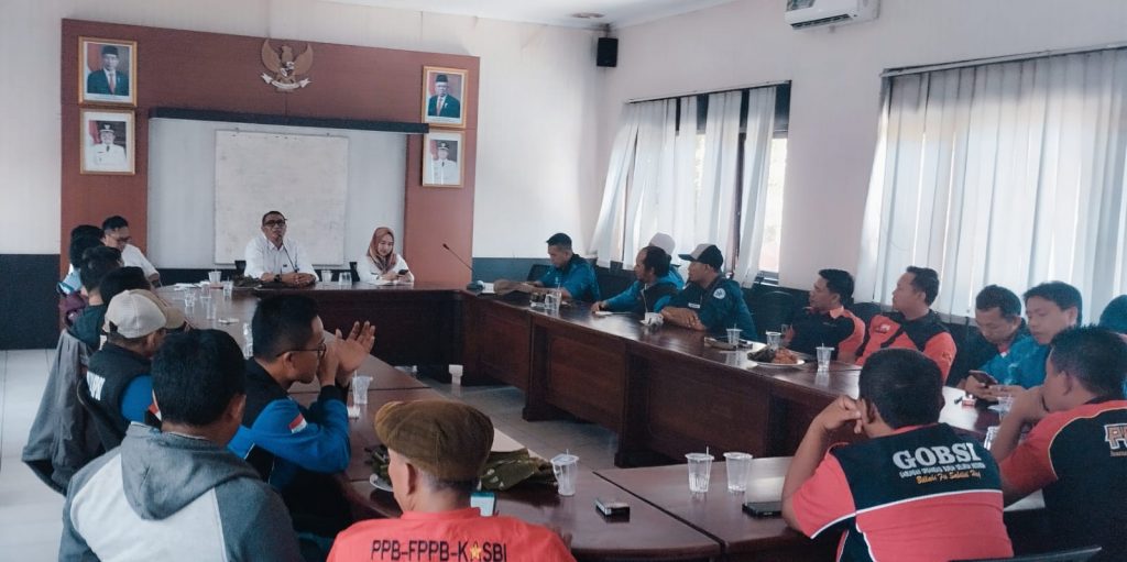 Tokoh utama dari serikat pekerja Kabupaten Sumedang langsung diterima oleh Kepala Disnakertrans, Taufik Hidayat, dan timnya.