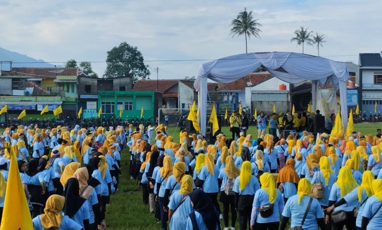 FAJARNUSANTARA.COM- Sekitar seribuan warga dari berbagai daerah meliputi Daerah Pemilihan (Dapil) VI, termasuk kecamatan Tanjungsari, Pamulihan, Sukasari, dan Rancakalong, memadati lapangan sepak bola Gudang, Kecamatan Tanjungsari, Kabupaten Sumedang.