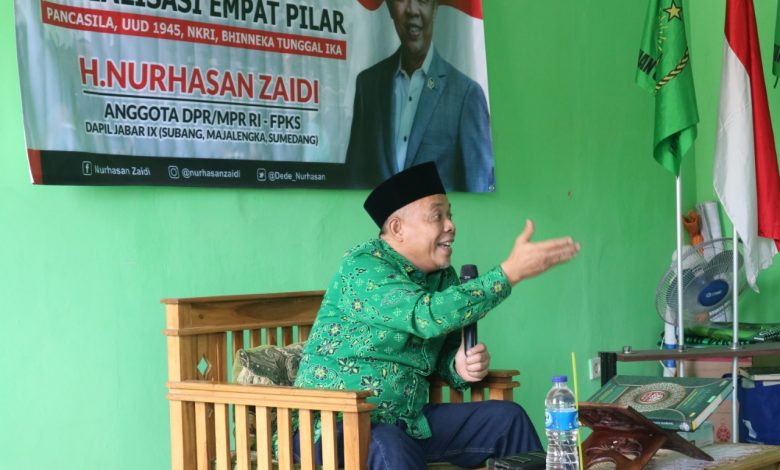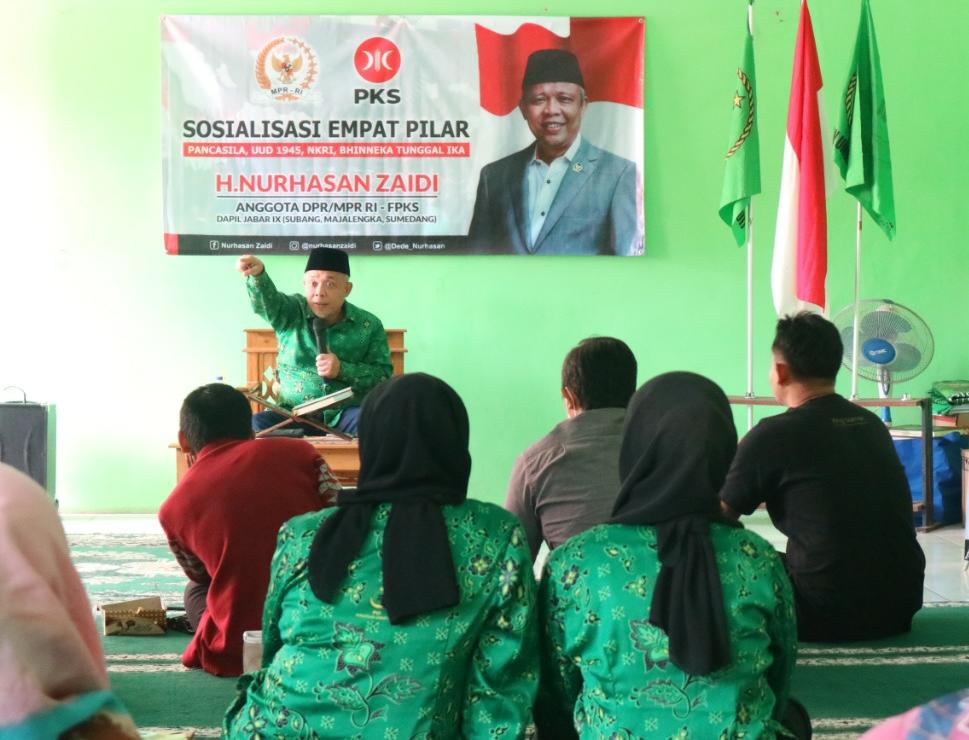 FAJARNUSANTARA.COM, SUMEDANG – Anggota MPR RI, Nurhasan Zaidi, menggelar acara Sosialisasi Empat Pilar MPR RI bersama Jajaran Pengurus Daerah, Pengurus Pemuda dan Wanita Ormas Persatuan Ummat Islam (PUI) Kabupaten Sumedang serta perwakilan Kepala Sekolah dan Guru Sekolah PUI juga Jama’ah Majelis Ta’lim Ishlahul Ummah Sumedang di Aula Gedung Sekeretariat DPD PUI Sumedang, Senin (8/8/2022).