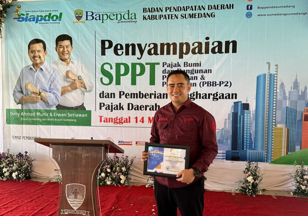 FAJARNUSANTARA.COM,- Spektakuler Muhammad Ilham Ramdhan Putra sang Notaris Pejabat Pembuat Akta Tanah (PPAT) kembali meraih Penghargaan dari Pemda Sumedang sebagi Penyumbang Pajak BPHTB Terbesar. Selasa 14 Maret 2023.