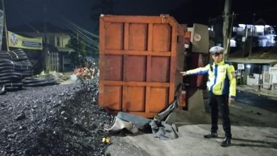 Tragedi Laka Lantas Dump Truck Terguling di Gunung Kunci Jalan Raya Bandung-Cirebon