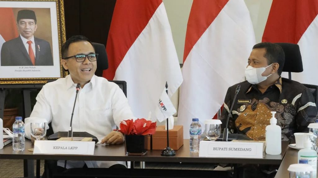 FAJARNUSANTARA. COM, SUMEDANG -Dalam rangka konsultasi dan koordinasi terkait optimalisasi pengadaan barang dan jasa pemerintah agar lebih kredibel, berkualitas dan menggerakkan ekonomi daerah, Bupati Sumedang H. Dony Ahmad Munir bersama beberapa kepala perangkat daerah menemui Kepala Lembaga Kebijakan Pengadaan Barang/Jasa Pemerintah (LKPP) RI Azwar Anas di Jakarta, Selasa (22/2/2022).