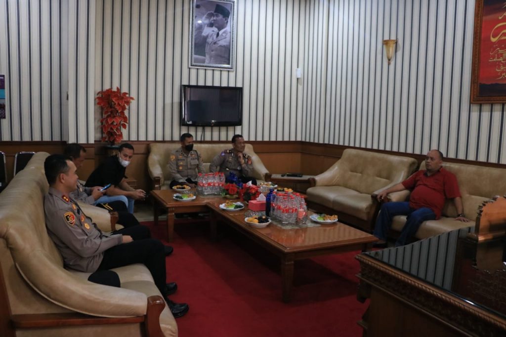 DPRD SUMEDANG — KETUA DPRD Kabupaten Sumedang Irwansyah Putra menerima kunjungan silaturahmi dari Kapolres Sumedang Baru AKBP Indra Setiawan, S.H, S.I.K, di Ruang Kerja Ketua DPRD Setempat, Jumat Pagi (15/7/2022).