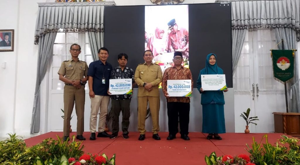 FAJARNUSANTARA.COM- Badan Penyelenggara Jaminan Sosial (BPJS) Ketenagakerjaan kembali menyalurkan santunan Jaminan Kematian (JKM) sebesar Rp 42 juta kepada tiga orang ahli waris. Kegiatan penyerahan santunan ini berlangsung di Kantor Bupati Sumedang, Selasa (5/11).