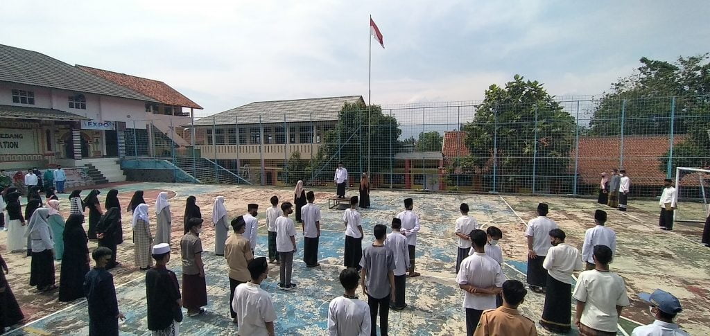 Cimalaka – Ratusan warga Madrasah Aliyah Negeri (MAN) 1 Sumedang gelar peringatan hari santri nasional (HSN) tahun 2021 yang jatuh setiap tanggal 22 Oktober. Peringatan yang diadakan pada Jum’at (22/10) tersebut dimulai dengan pelaksanaan upacara bendera.