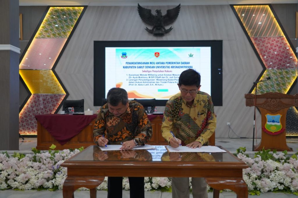 FAJARNUSANTARA.COM,-Pemerintah Kabupaten (Pemkab) Garut dan Universitas Krisnadwipayana (Unkris) telah resmi menandatangani Memorandum of Understanding (MoU) untuk Pelaksanaan Tri Dharma Perguruan Tinggi.