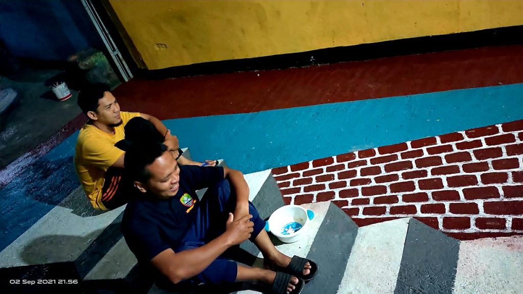 Pengecatan lukisan pada jalan gang ini dilaksanakan kemarin, Kamis (2/9). Untuk pelukis sendiri, dibuat oleh Kusmana dan kawan-kawan yang merupakan warga asli Ganeas.